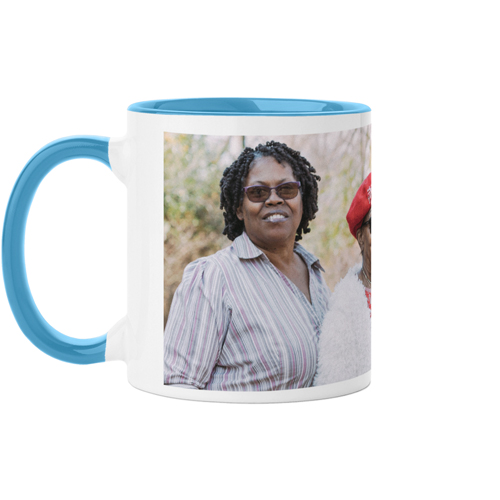 Once you choose your mug design, click on Personalize. There are 4 tabs along the side that let you choose your Options, Edges, Background, and Layout. Those tabs allow you to choose the mug size, colors, and add pictures, as well as a small area for text. You can pull photos from your Shutterfly, Facebook, or your computer. You can change the background color behind the pictures and pick the layout from 1 to 14 pictures. When you choose the photos you want to use there is an option to edit them. Click on the photo while it is in/on your mug and you can adjust the colors or add a filter.